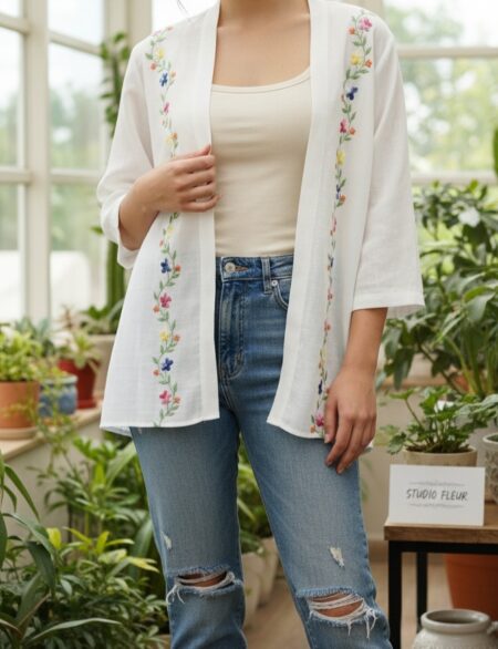 White cotton linen shrug with beautiful hand embroidery